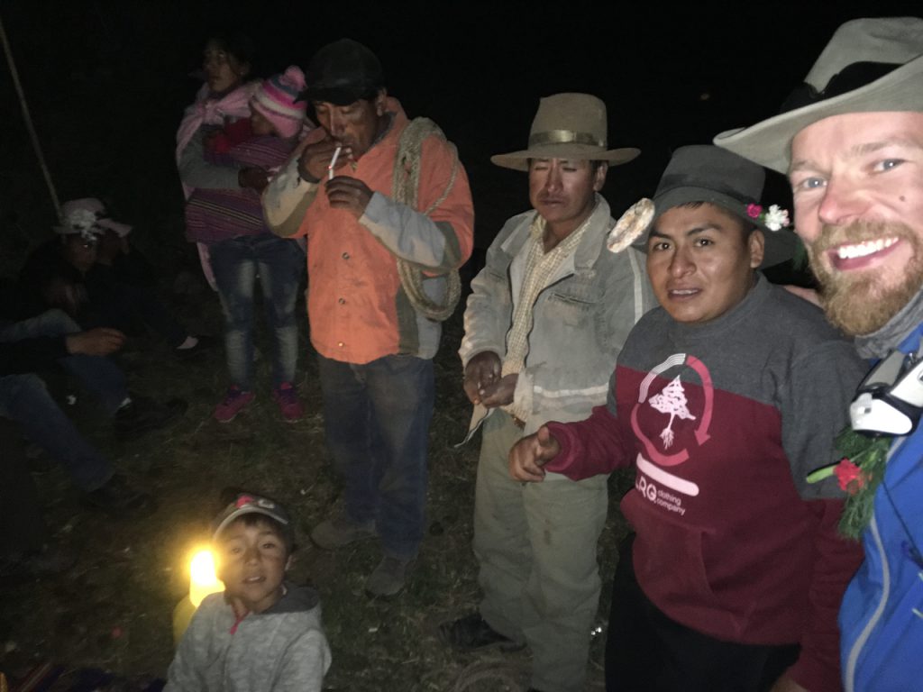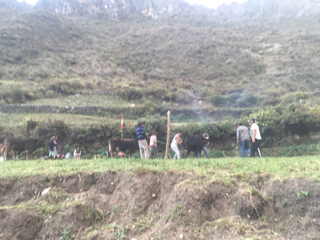 After blasting down through the town of Huancahuasi, where I was a little too late to enjoy the hot springs, I pushed on for my target for the evening – the town of Paquian. I arrived on the outskirts of Paquian to find a group of farmers/cowboys performing some sort of cattle ceremony. It turned out to be the annual rodeo, which happens after Peruvian Independence Day (28th July) every year. They immediately invited the gringo to come and join in and drink some Chicha! I sat by the sides and watched as they first roped up, then rolled over the cows, branding them, fitting new ear ribbons (as ID) and trimming their horns. Once darkness fell, everybody gathered round to drink and sing…