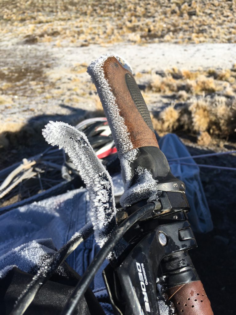 It had been a long day – possibly the chilliest so far too – and I was almost out of water. I was either going to push on to Yantac, where I ought to be able to stock up, or I had to find a water source. The difficulty being that, having been in a mining area all afternoon, I couldn’t really trust any of the sources that I had come across. Fortunately, just before sunset, I reached a large lake with some suitable flat ground nearby and quickly made camp.