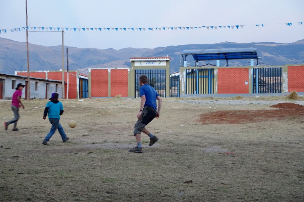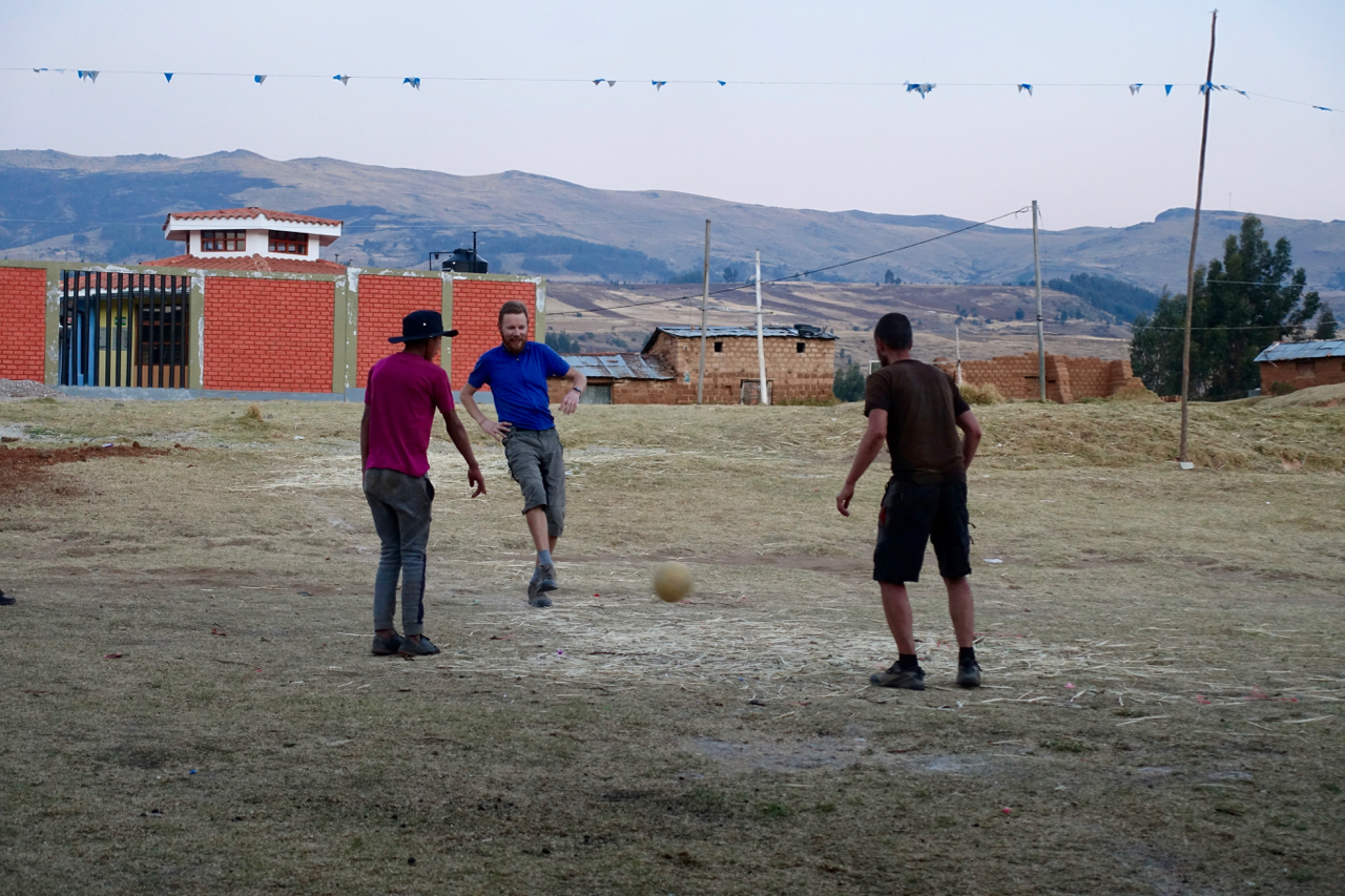 Shortly after, three schoolkids turned up with a football and it soon became apparent that Europe would have to take on Peru at a high altitude contest (3500m). Within about 10s, Thomas and I were both bent double, desperately gasping for air! Needless to say, despite our height and strength, it was their numerical advantage and far superior fitness that shone through, Peru winning 7-5.
