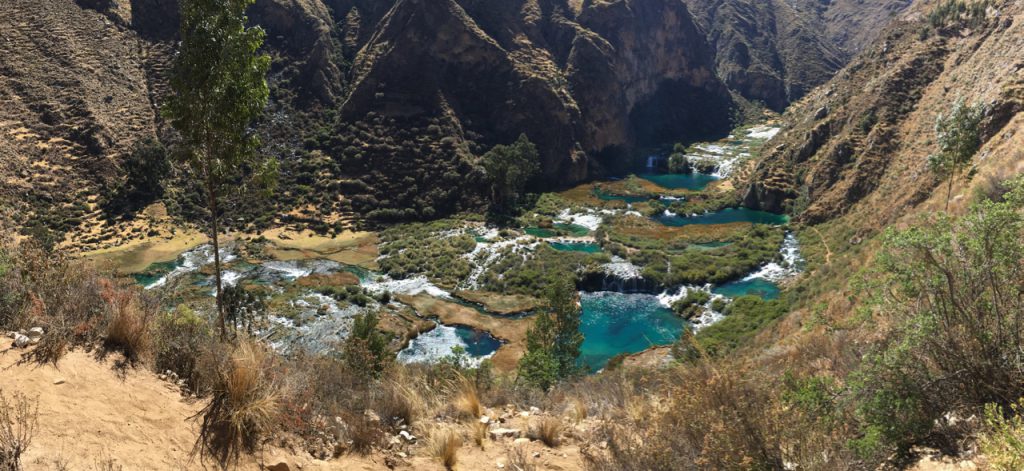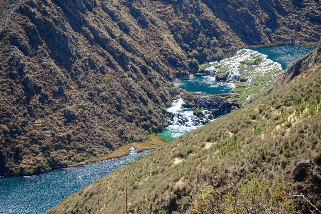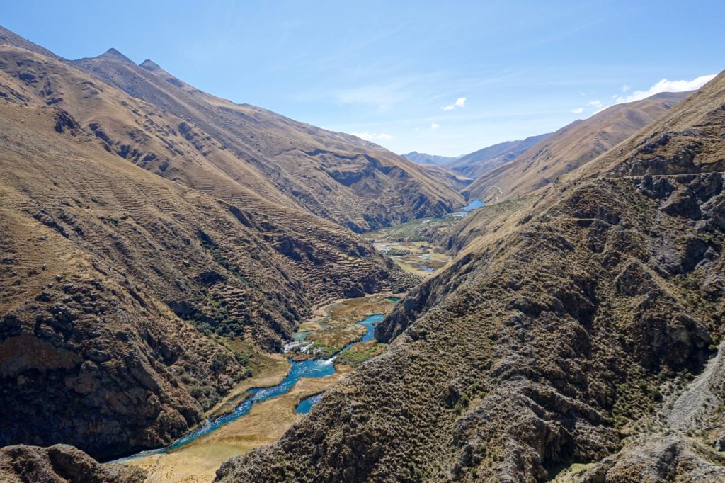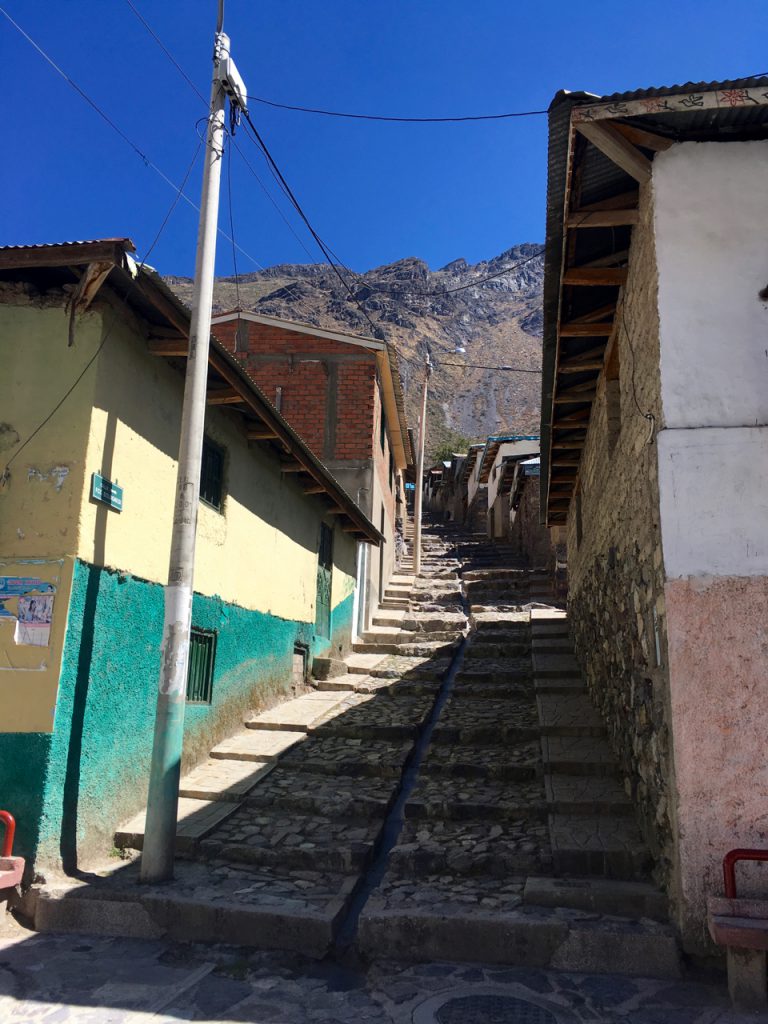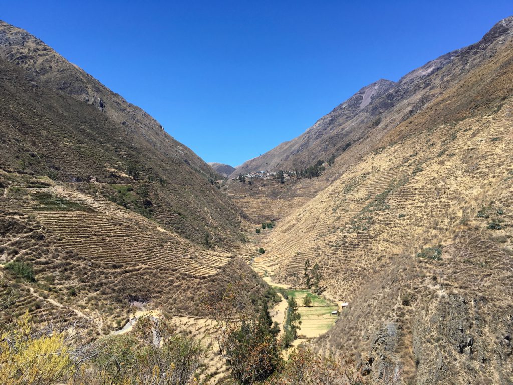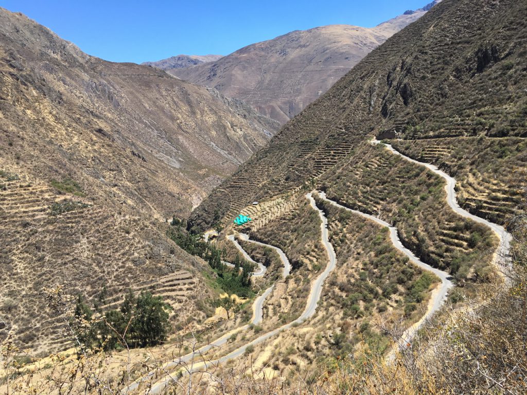The tarmac continued all the way up to the village of Laraos, where I decided to rest up ahead of what would be a hard day’s climbing the next day (up the really big climb in the elevation profile above) towards Punta Pumacocha. Coming up the valley, there was extensive Incan terracing, still in use by the farmers today…