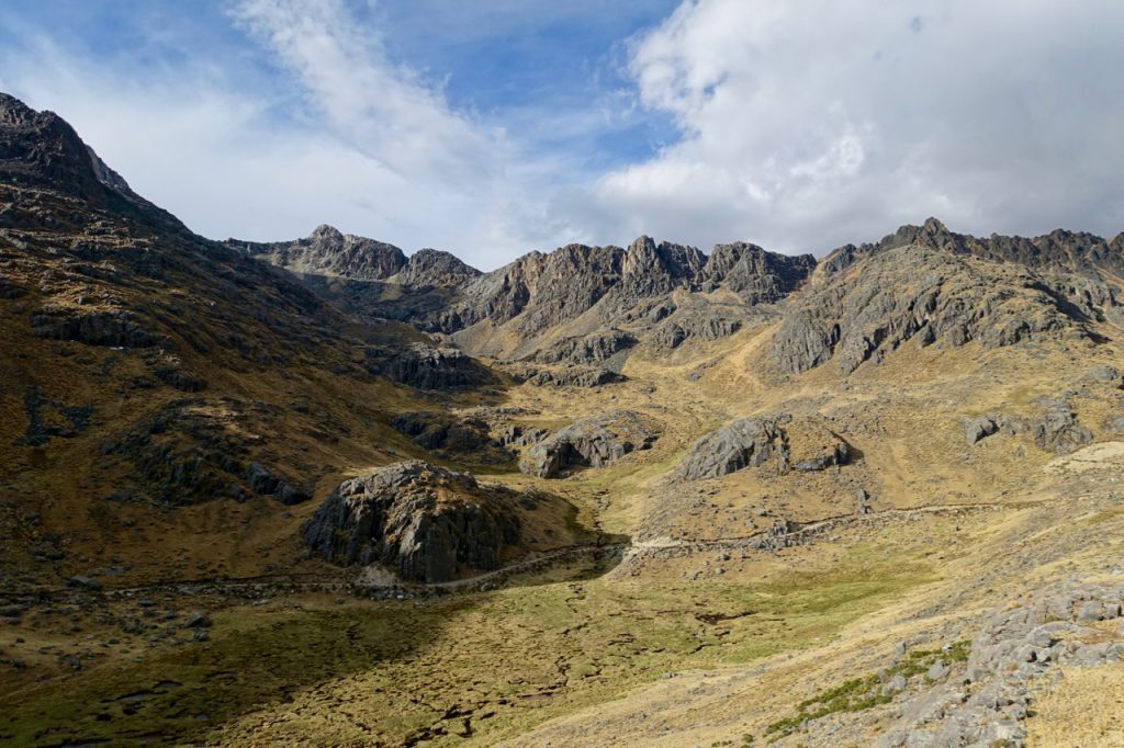 The next day I continued the climb, now back on a dirt road, up through increasingly impressive and imposing scenery…