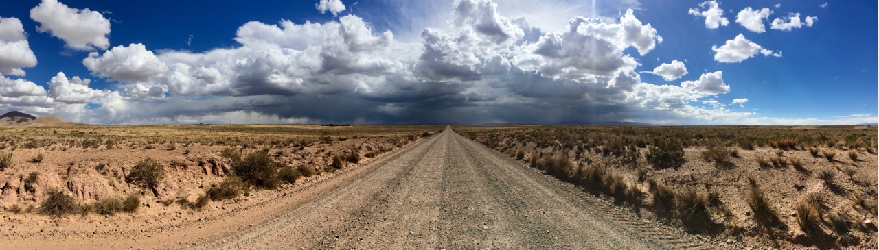 Energy somewhat restored, we set off the next morning on rolling terrain, with the odd brief sprinkling of hail or rain along the way, the road by now having reverted to dirt…