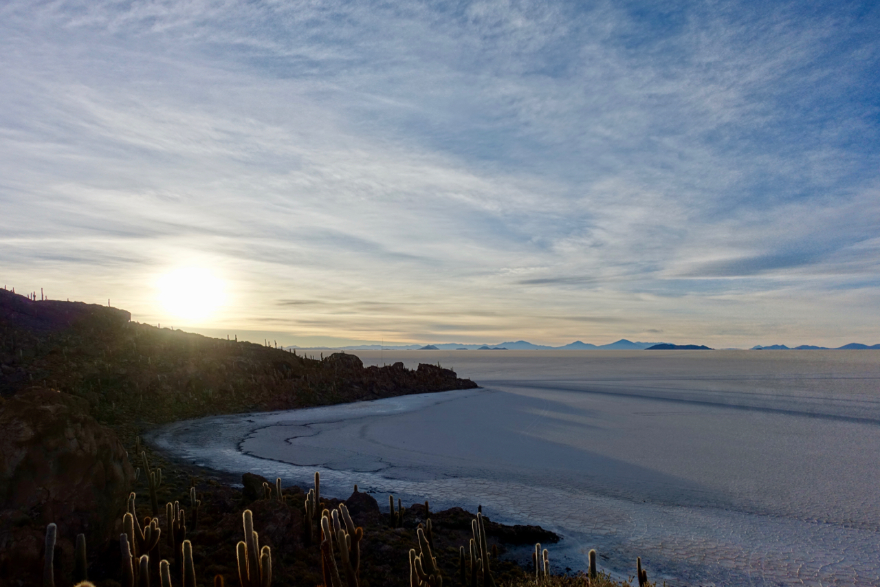 We were headed to Isla Incahuasi, an island right in the middle of the Salar. It’s very popular with the tourist jeeps, so there are some facilities there too, but they leave before sunset so we had it to ourselves overnight. There we finally caught up again with Neil and Vicky too.