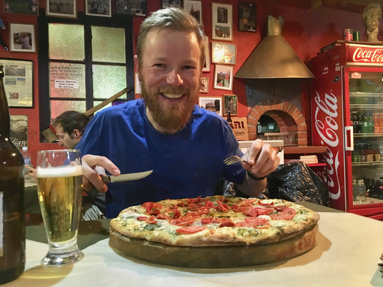 A celebratory pizza was in order. The guys were pretty excited to see sofas too!