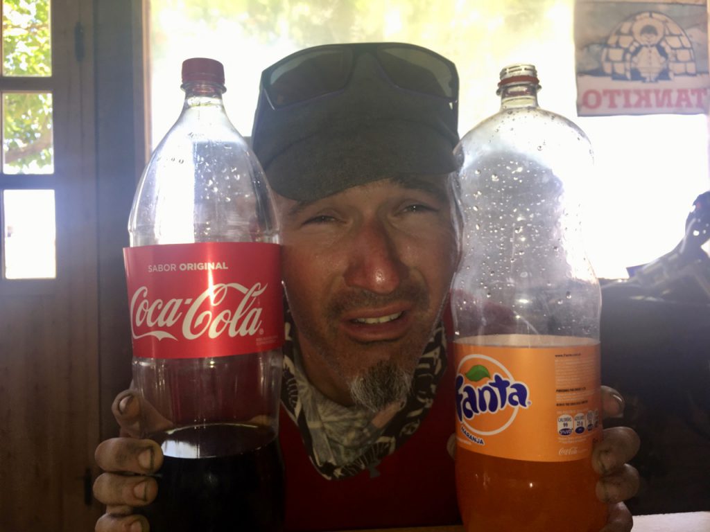 Rodeo is clearly something of a getaway for the residents of San Juan with lots of cabins for rent. There we found a camping and set about buying produce to cook up a decent dinner. The next morning was taken up trying various basic fixes on Scott’s Rohloff and sending out emails to Germany asking for help! We soon hit the road though and made it to the town of Iglesia, where we found lunch and prepared to take on extra water (as we knew that sources would be limited the next day). To expand our carrying capacity, we elected to purchase 2.25l bottles of fizzy drinks each and replace with water. Not wanting to be wasteful, we attempted to drink these bottles over lunch – Scott’s face perfectly encapsulated how we both felt. Had we had more sense, we might have just asked for some empty bottles! Where’s the fun in that though?!