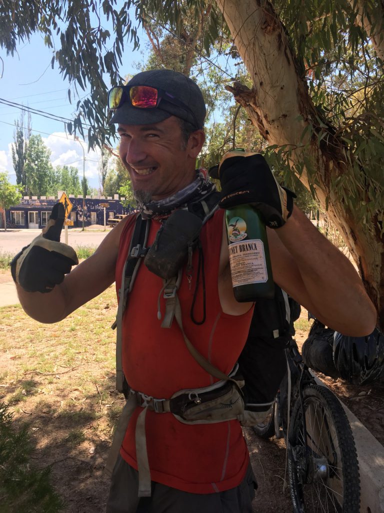 The mechanicals continued, this time with Scott’s rear (tubeless) tyre leaking air but nothing too major. After a brunch stop in Barreal, and downing the rest of Scott’s bottle of Fernet Branca (nothing like a shot before heading out on a long hot stretch in the midday sun), we set off towards Uspallata…