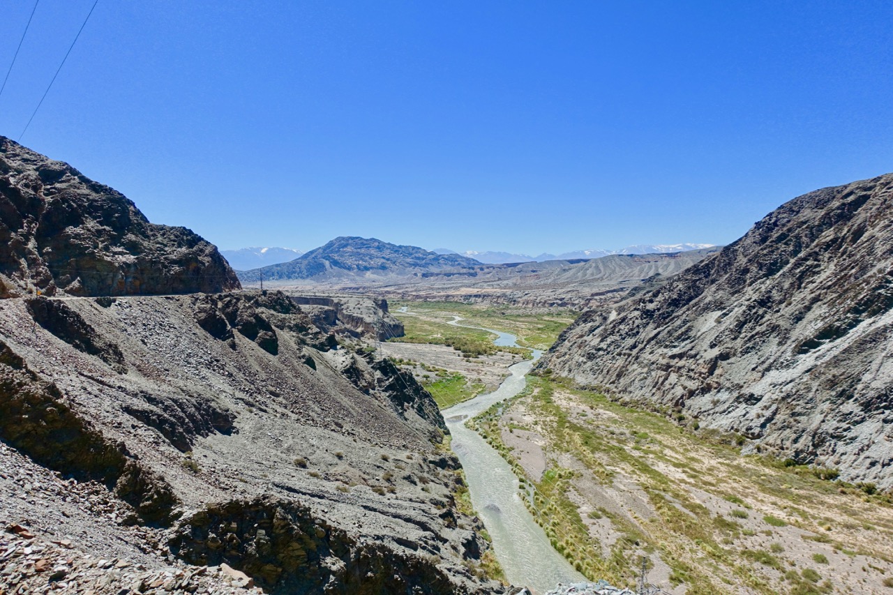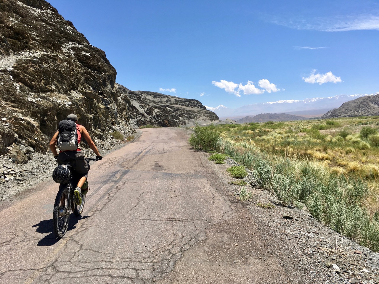 The mechanicals continued, this time with Scott’s rear (tubeless) tyre leaking air but nothing too major. After a brunch stop in Barreal, and downing the rest of Scott’s bottle of Fernet Branca (nothing like a shot before heading out on a long hot stretch in the midday sun), we set off towards Uspallata…