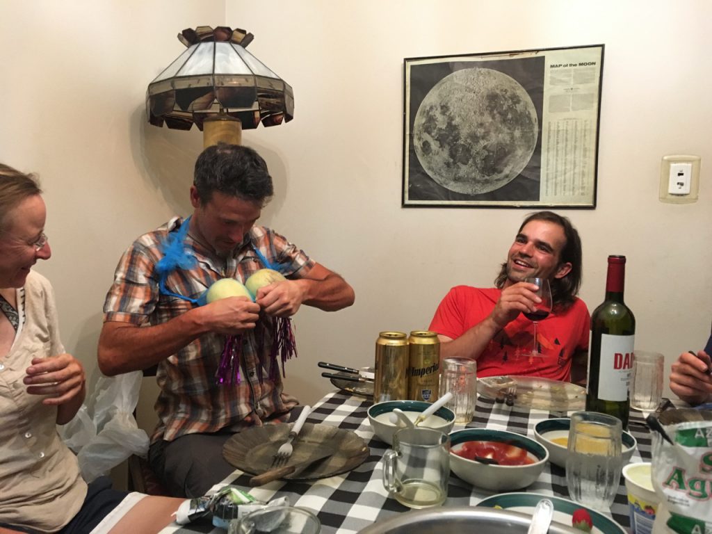 On the 24th, we headed into town to join eight other touring cyclists in the apartment that we had booked for Christmas. Neil & Vicky (Irish & English) rounded out the ‘judeo-anglo-saxon-celtic’ contingent, whilst Thomas, Tina, Mirko, Ina, Johannes and Sebastian are all German. We took it in turns to rustle up various meals from our homelands, although roast turkey for Christmas lunch was replaced by a massive 3kg cut of pork on the parilla (barbecue)! It was a lot of fun…