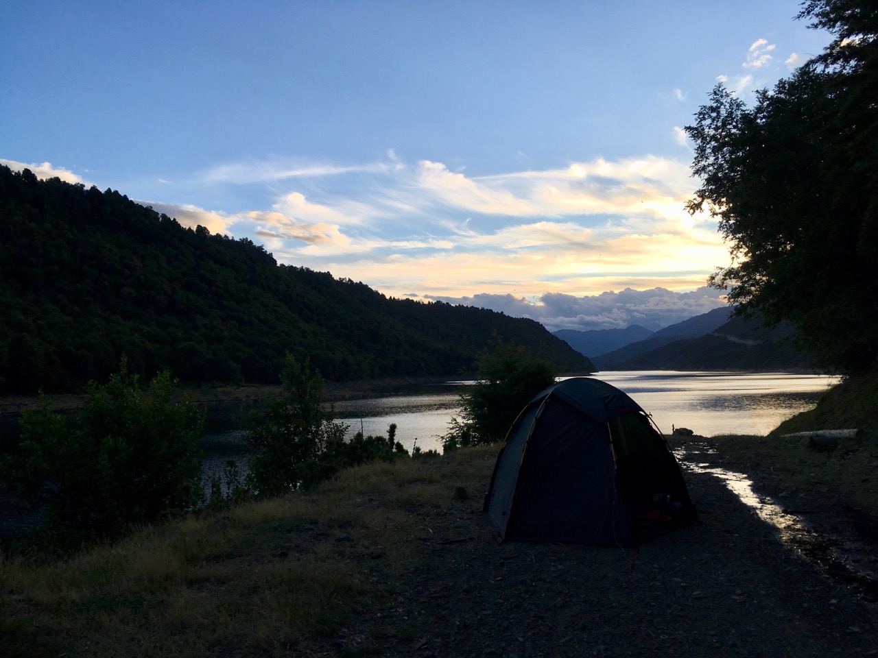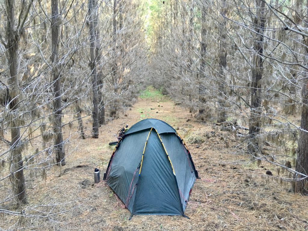 Emerging from the foothills, I soon discover how much of the land is privately-owned and, therefore, fenced off in this part of Chile. Much of it, however, is used for forestry and inevitably the odd gate is left open, leaving me with the chance of a wonderfully peaceful, if a little creepy, forest campsite…