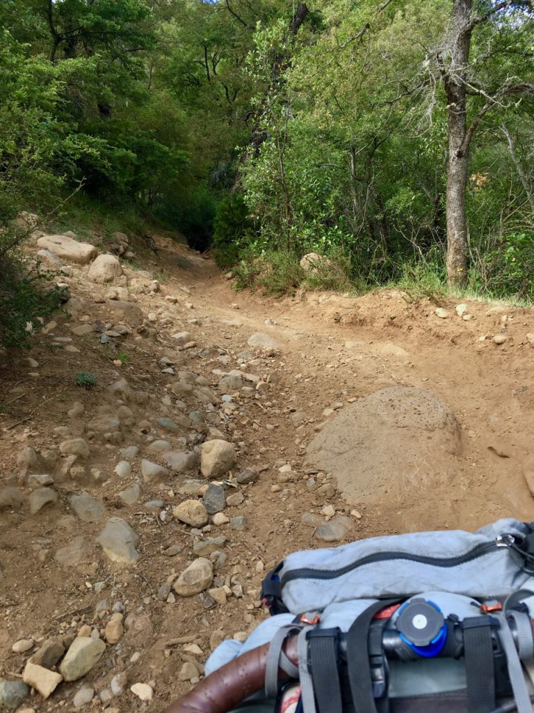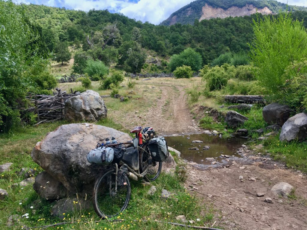 After several kilometres of rarely-used doubletrack, I’m back on the ripio and heading up some more steep, sharp climbs. Even out here, in relatively remote parts, many areas are fenced off and so I push on, by now with rain starting to fall, and eventually find a small forest to pitch up in.