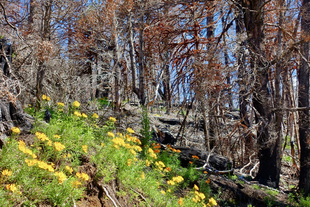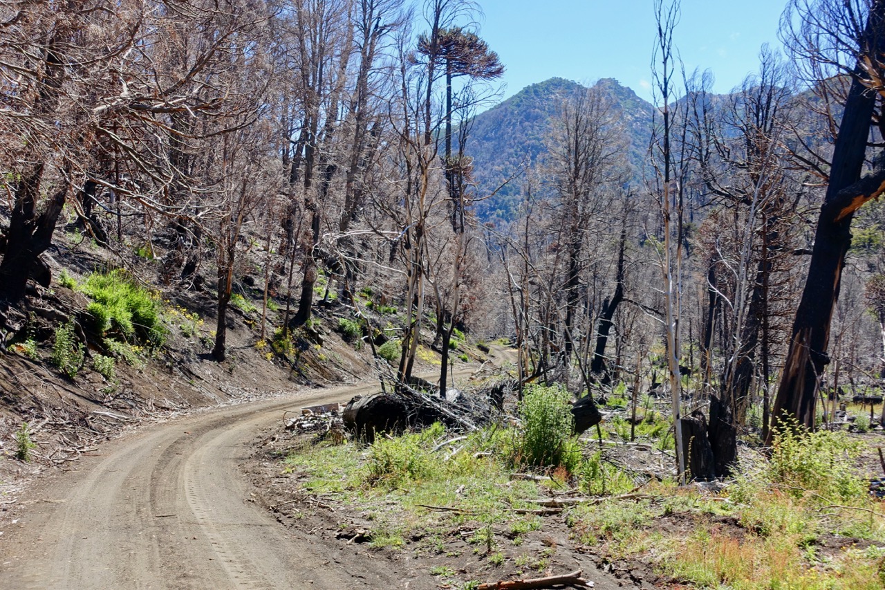 A fantastic little road, I’m soon winding down through the forest and come to a more recently burnt-out section…