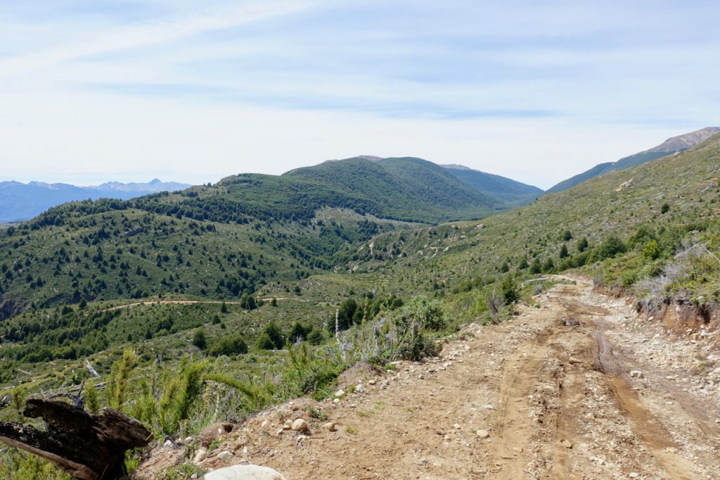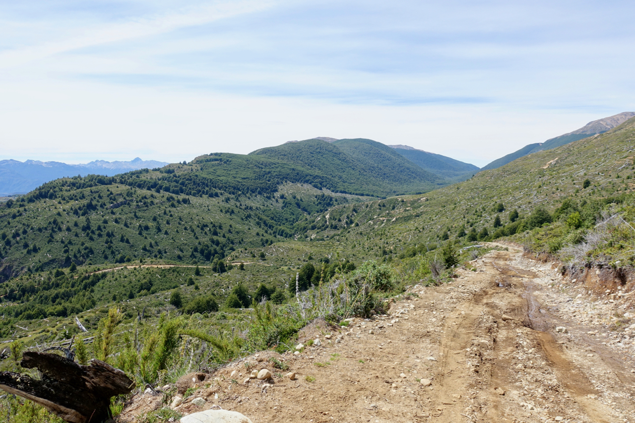 A short climb the next morning and I was back at the turn-off for my next mini-adventure, a 2-day 4×4 track running through fairly remote mountains, following notes kindly put together by Dan & Gina (Fatcycling). A long series of gates had me getting quite proficient at the balancing act required to open a double gate, manoeuvre the bike through and then close and lock it without leaning the bike up against something (other than me)! The track weaved through beautiful woods and farmland, before emerging into a relatively barren area that had clearly been ravaged by wildfires in the past…