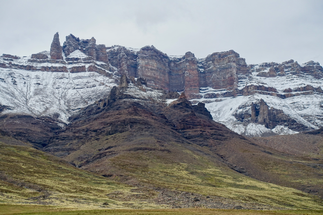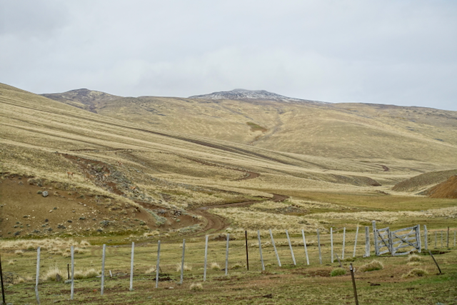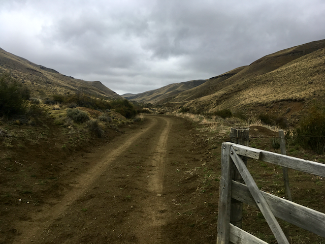 The next day I set out from El Calafate on my direct route South in overcast conditions, which soon developed into a light drizzle. As I’ve mentioned before, what to wear when climbing in the rain is a tricky decision – just a top and you can be on the cold side (especially when you stop) or wear a jacket and sweat profusely! I went with the top option, knowing that I had a fair bit of climbing ahead to keep me warm. Pulling off the main road and past Estancia Huyliche, there were prominent ‘No entry without permission’ signs, so I stopped off at one of the houses and asked if they’d mind me passing through – no problem there! After a few kilometres, the road crosses into the ‘Reserva Natural Estancia 25 de Mayo’ and I started to see more and more Patagonian wildlife – most notably guanacos (a bit more antelope-like than a llama but with the same long necks), rheas (flightless ostrich-like birds), cows and condors.
