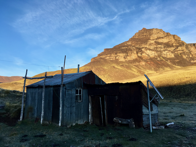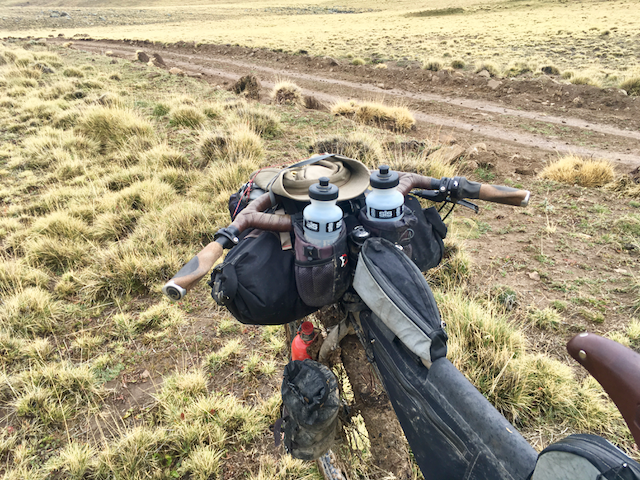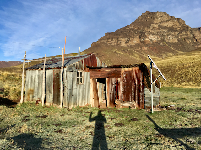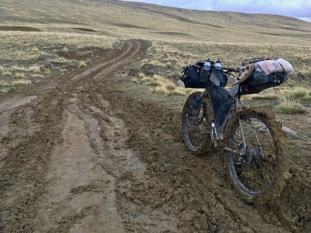 Heavy rain soon swept through, testing my morale further, but pushing on, the weather eventually brightened a little and the path finally began to descend down towards a river at the bottom of the valley. Following this river up-stream required regular crossings through icy water, each time stopping to take off my shoes and put on my sandals, in a somewhat futile attempt to keep my shoes on the drier side of soaking wet! There were sections of rideable terrain but the mud continued to be pretty infernal. Keen to make as much ground as possible up towards the pass, I kept going and was finally rewarded by finding a small shack with an unlocked door, that gave me a little shelter from the wind and drizzle. It turned out to be something of a godsend, as that night was bitterly cold – one of the few times that I’ve wished for a warmer sleeping bag! Dragging myself up in the morning, a clear sky explained the cold, the mountainside a frosty white. Thankfully, the clear sky also meant that, once it had cleared the mountain, there was a bright sun to warm my chilly limbs and help dry out some of my kit which was still soggy from the day before.