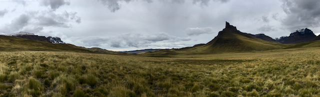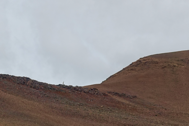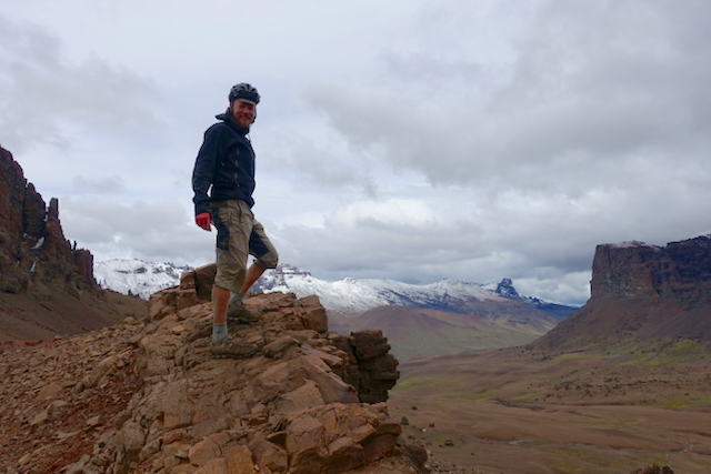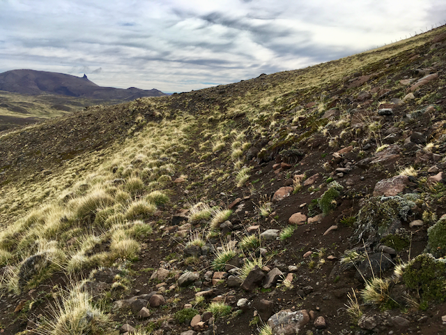 It clouded over a little but the day remained mercifully dry as I slowly pushed on up towards the pass. After a short section of rideable single track, it became clear that I’d have to push/carry the next 7km up to the pass. It was fairly slow progress – either searching out guanaco trails or making my own way across the mountainside. Preferring to push the bike from the left side (this means I’m pulling from the saddle with my stronger right arm, whilst my left has control of the bars and the rear brake), it wasn’t until I was within sight of the pass and wincing, for the umpteenth time, that it finally occurred to me to remove the left pedal! Whilst my flat pedals are great in many situations, pushing is not one of them – the large pins that protrude to supply grip tend to drive into the rear of my right calf, regularly drawing blood!