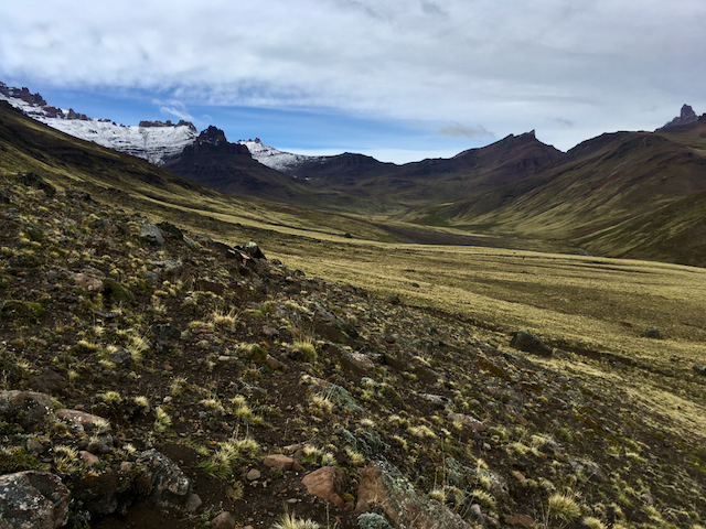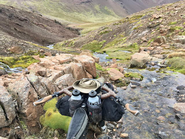 The pass marked the border with Chile and I set off down the fun, shale descent. After a while, however, I was at the valley floor and following a stream.