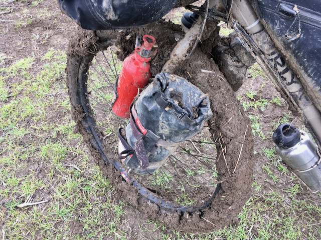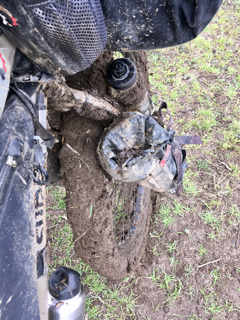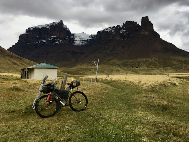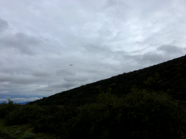A cosier little shelter you’d be hard-pressed to find. Two fishing flies in a cork on one of the windowsills suggested that it was perhaps a fishing lodge. Or, perhaps, just a basic getaway. A bottle of red wine on the side was clearly a ‘thank you’ from a recent holidayer – my only regret was that my meagre rations could not offer up any such gift for my stay! It seemed pretty unlikely that anybody would turn up but, after waiting an hour or so, I fired up the stove to warm things up and dry out my soaking shoes and socks, as well as my somewhat damp sleeping bag. I’ve had some good fortune on this trip but I think this slots in near the very top of the lucky incidents list! It was tempting to hang around for longer, but the rations wouldn’t permit that so, having thoroughly tidied the place, I headed off early the next day, wary of having a fair distance to cover. It was an overcast morning with intermittent drizzle and yet more mud and river-crossings to negotiate. Shortly after passing Estancia La Cumbre, the road thankfully started up again, albeit fairly muddy. Here one of the vehicles from the upmarket Awasi Lodge stopped to talk and ask where I’d come from. Although initially a bit frosty given the, ahem, legality of it all, they soon warmed upon hearing where I had started my trip, especially as the guests were a British couple! The going wasn’t too bad and I felt like I was making pretty good progress until I got to the foot of the valley, with about 10km to go to get to the border back with Argentina. The road turned into the worst conceivable type of sticky mud that was totally unrideable and difficult even to push through. My fading morale, on the usual touring rollercoaster, was lifted by the sight of dozens of circling condors, a particularly large one flying about 10m over my head. They were everywhere – I got to about 40-odd before I lost count. Back to pushing, however, and the progress was pretty slow – the wheels needing clearing on a regular basis. The final stretch was frankly ridiculous mud…