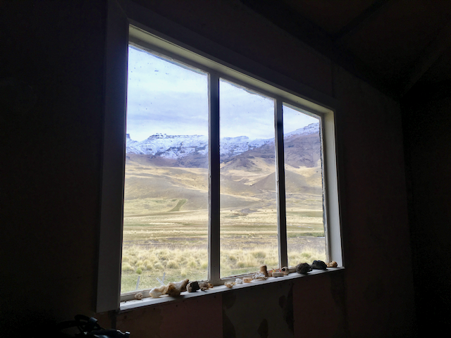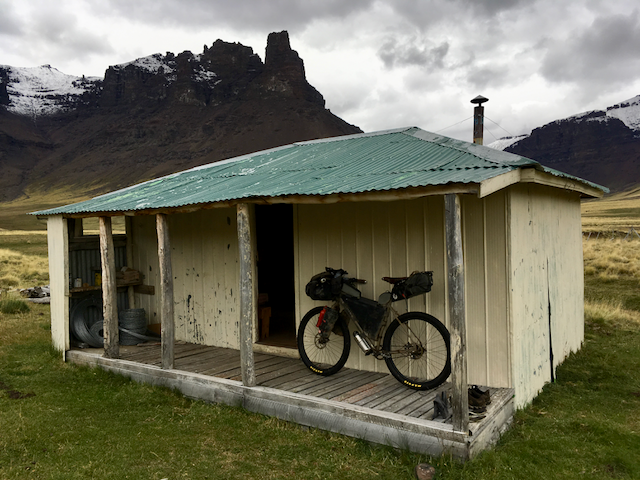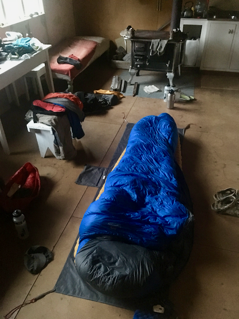 Coming down from the pass, I had referred to Danny’s route notes and saw that he mentioned a potentially uninhabited green shack not long after. Despite a record low daily mileage, I was not in the least bit bothered about calling it a day and resting my weary limbs. For once, my upper body – my wrists and arms in particular – had had a considerable workout and the day had been right up there, in terms of arduousness. Nearing the shack, it appeared to be empty but reasonably well-kept, and I gave up hope of it being open. To my considerable delight, however, the door was held closed with just a leather strap and, upon entering, I was greeted by this…