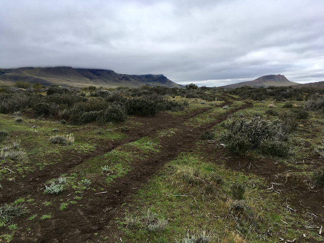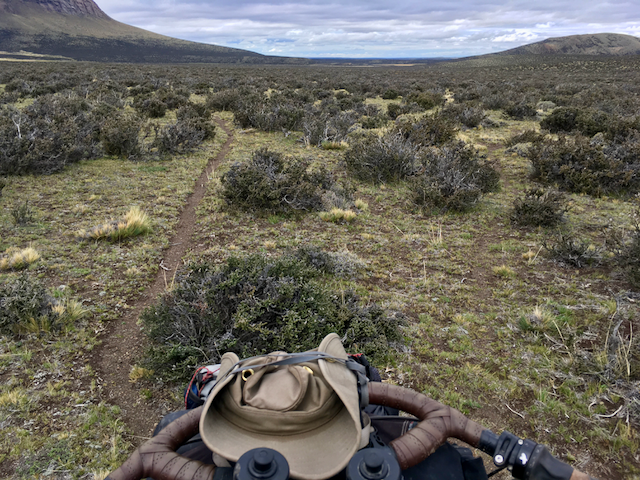 But, shortly after, a rocky stream marked the border with Argentina and the terrain typically and rapidly changed to dry brush. The next few kilometres to the road were quite a fun challenge of riding a maze of animal tracks through the low scrub.