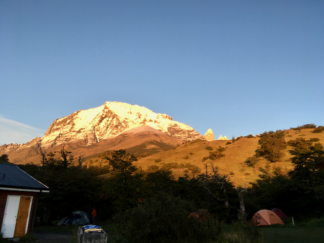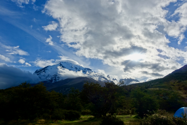 We found a sheltered spot and waited for another two hours, hoping that we might get another glimpse but it was not to be! We could not complain, however, as we had been rewarded for our early start by getting there in just the nick of time. It was time to descend back down to the campsite. As we neared the aforementioned rope across the path, we noticed a large group of hikers gesturing up at us and a pair of park wardens. Clearly, the wardens were stopping people from ascending and these hikers were somewhat disgruntled at the sight of two hikers coming down from their desired destination. We walked past slightly smugly, but also safe in the knowledge that we had not hopped any barriers or disregarded any notices! As the weather cleared that afternoon, we were treated to a better view of the surrounding mountains…