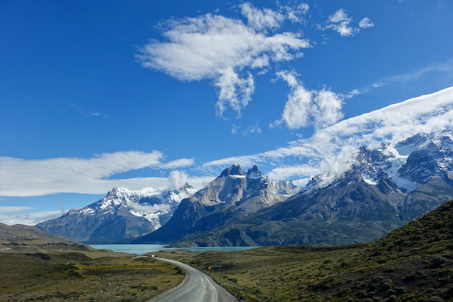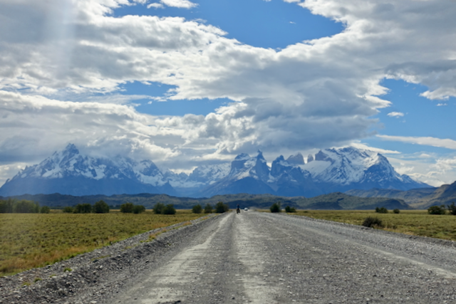 With the tyre mended and re-mounted, by midday I was finally able to get on the road and start heading out of the park. The route, however, would take me along the front of the Torres del Paine range and I’d been blessed with a great day for it – I lost count of the number of times that I had to stop and marvel at it, especially once I began to cycle away, where turning my back on this natural wonder almost seemed like a profound transgression.