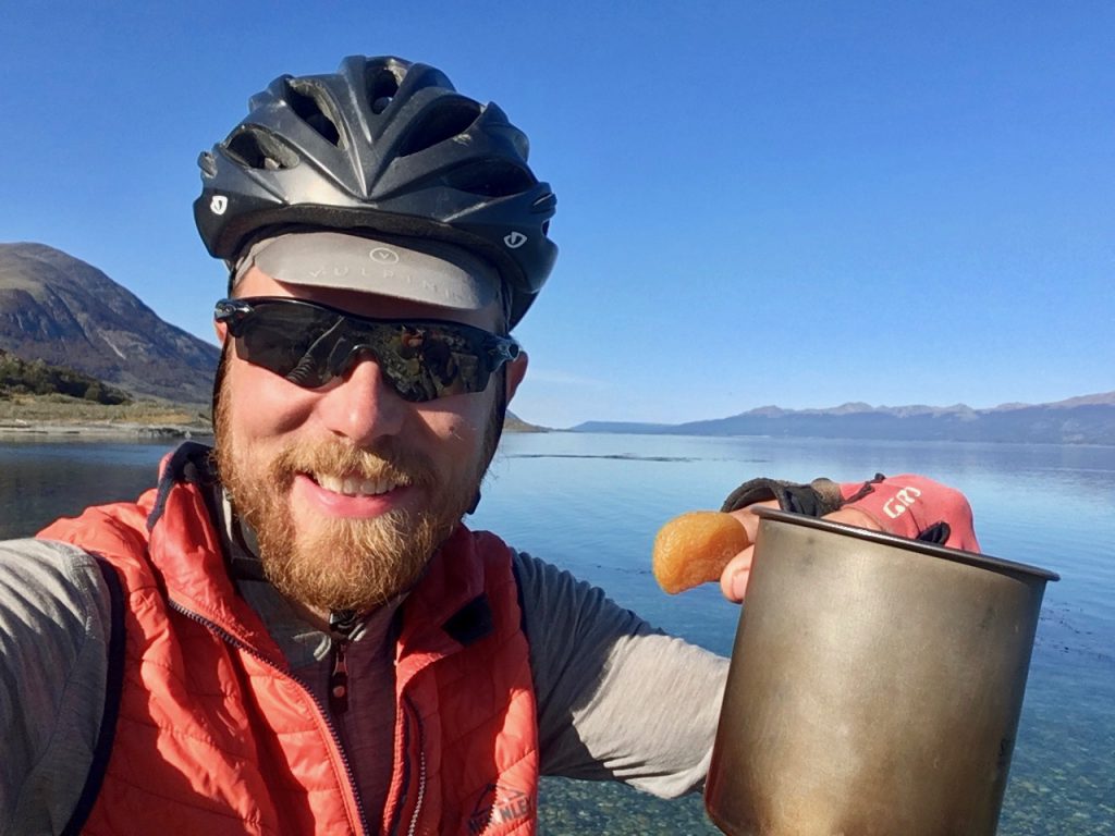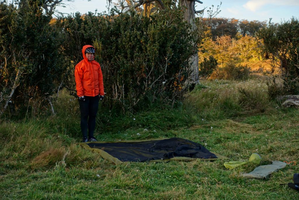 By mid-afternoon, we found ourselves on a stony promontory for a little break. The sort of campsite that you’d rarely dare to take advantage of in Patagonia, fearful of tent-shredding winds appearing from nowhere! However, we decided to chance our luck for my last night of camping on the entire trip and, boy, am I glad that we did!
