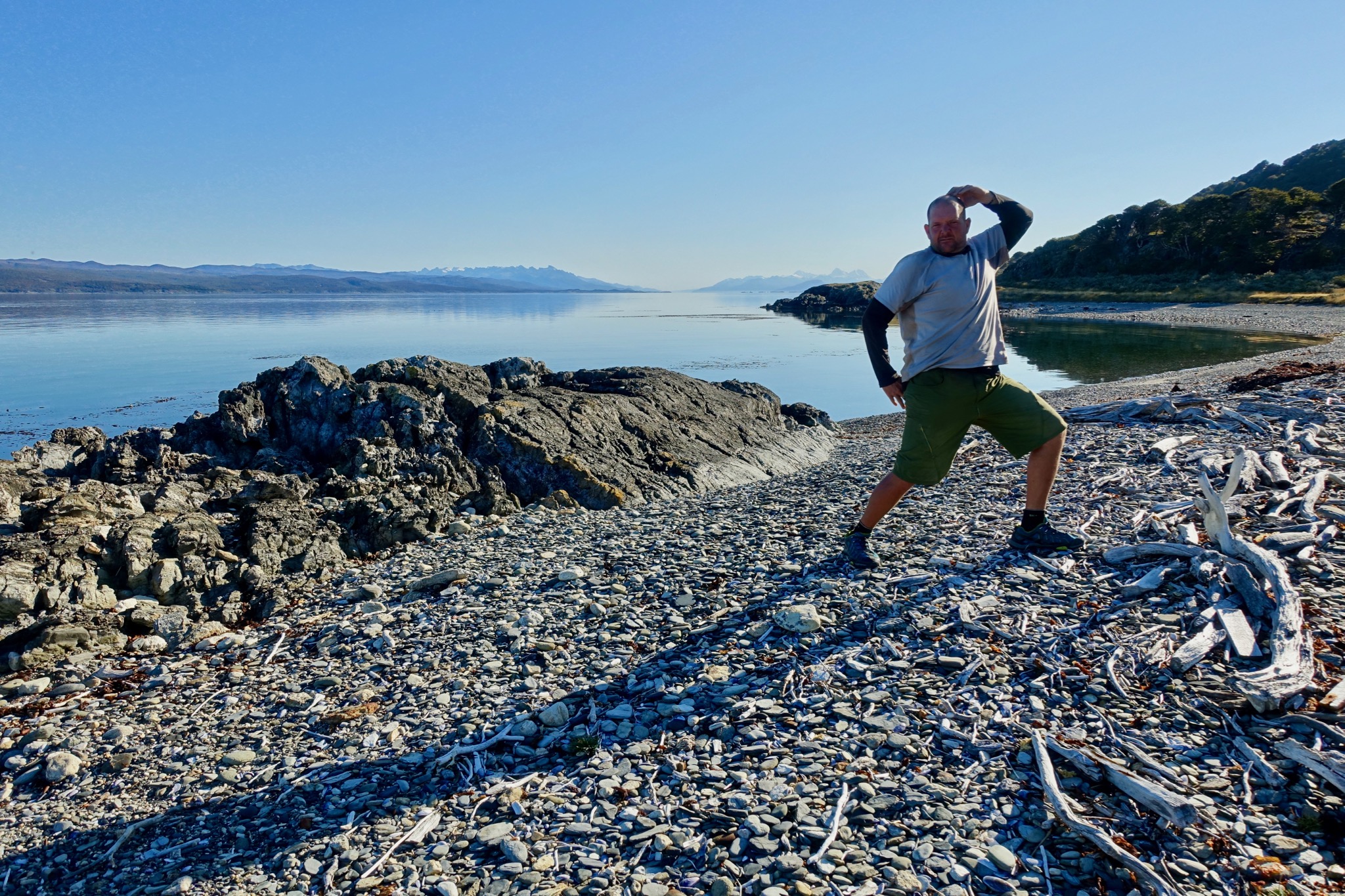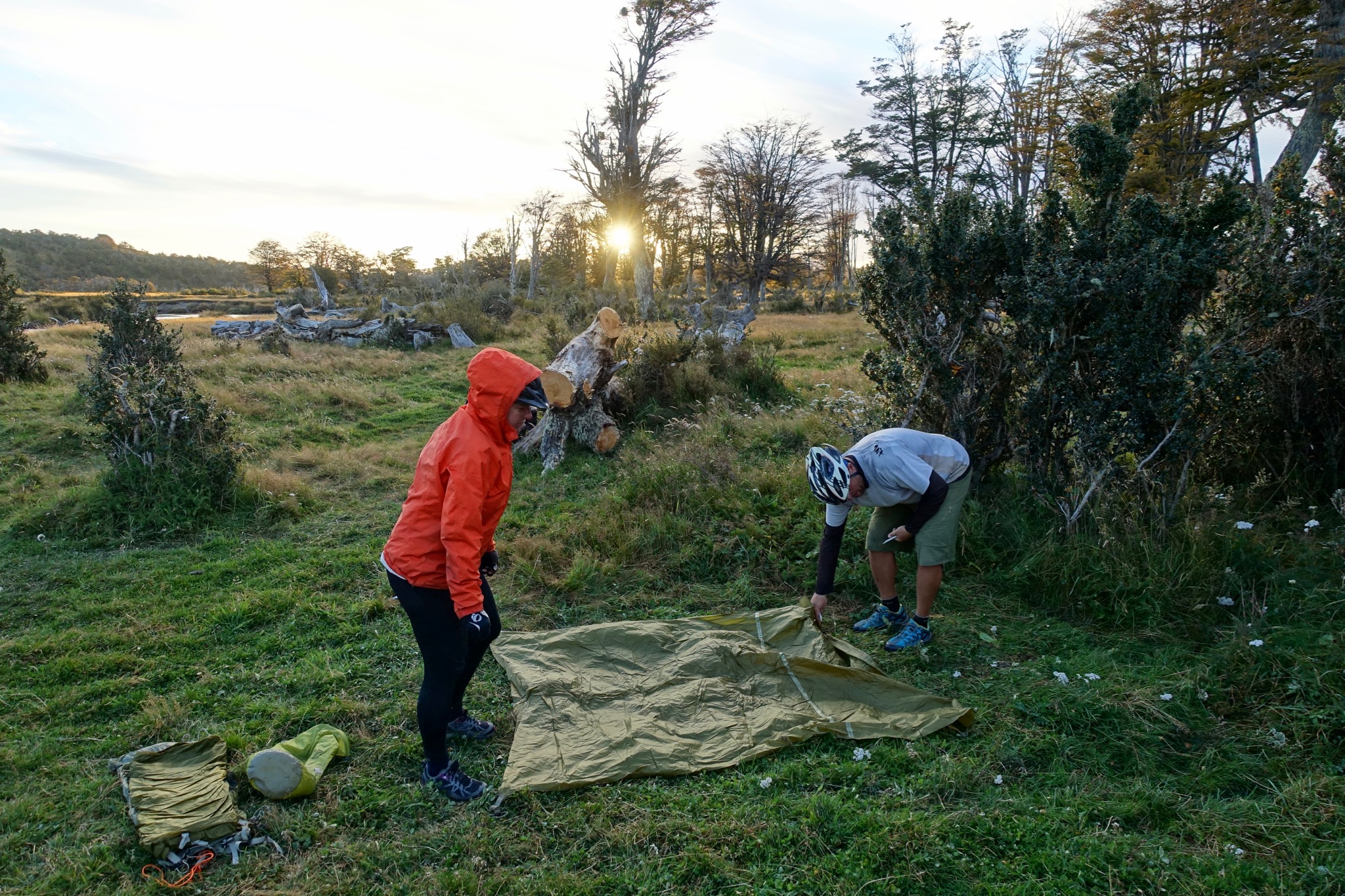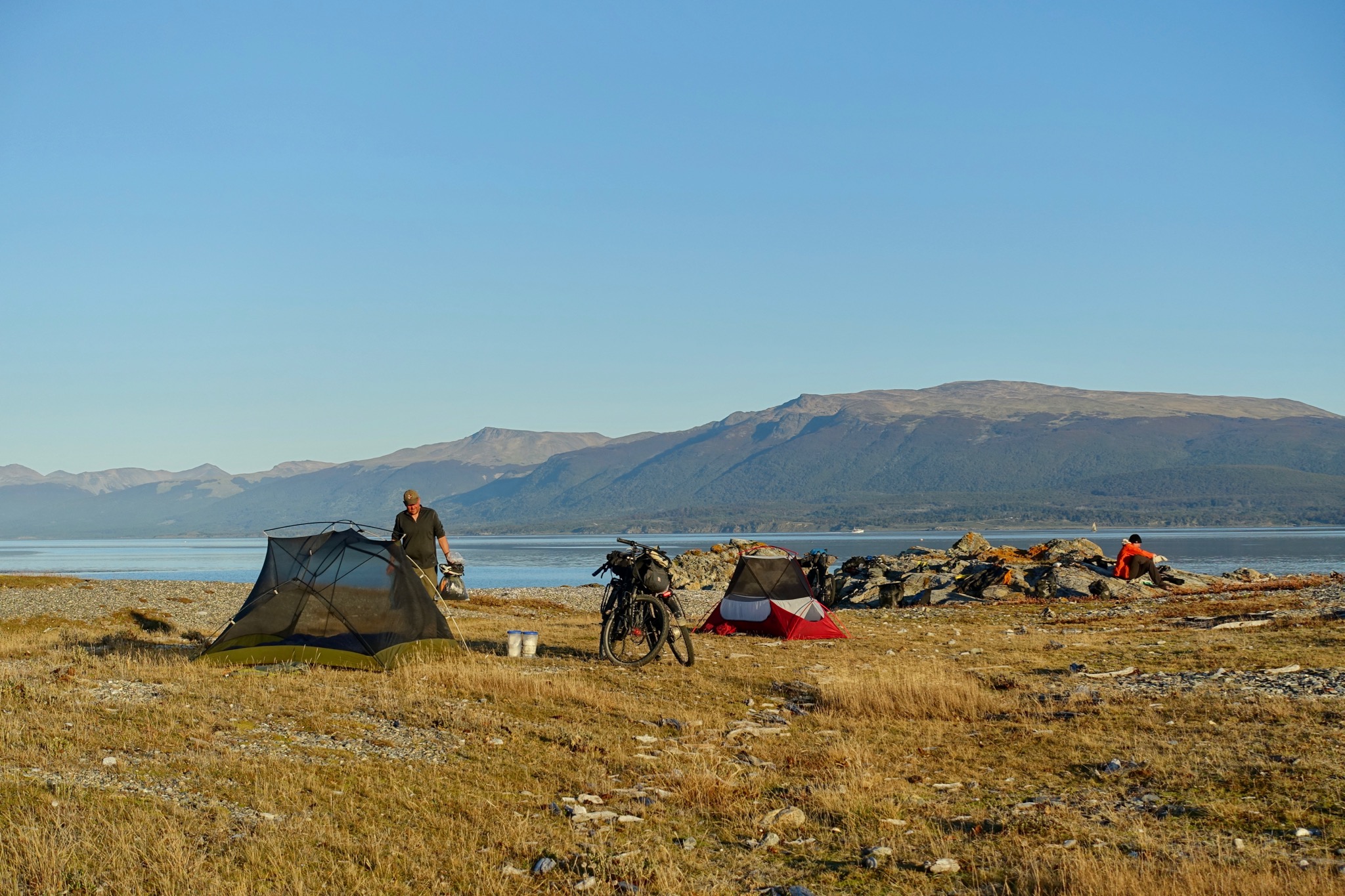 By mid-afternoon, we found ourselves on a stony promontory for a little break. The sort of campsite that you’d rarely dare to take advantage of in Patagonia, fearful of tent-shredding winds appearing from nowhere! However, we decided to chance our luck for my last night of camping on the entire trip and, boy, am I glad that we did!