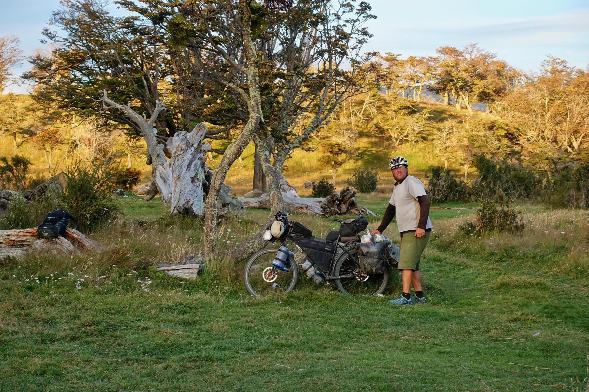 In the end, we found ourselves back at the campsite that we’d been at the night before, slightly cursing the fact that we hadn’t just hidden all our bags there that morning and ridden in lightweight mode for the day! Once again, we were treated to a lovely sunset to round off a great day. There was time for the odd fire ritual too – the burning of my now very holey merino top!